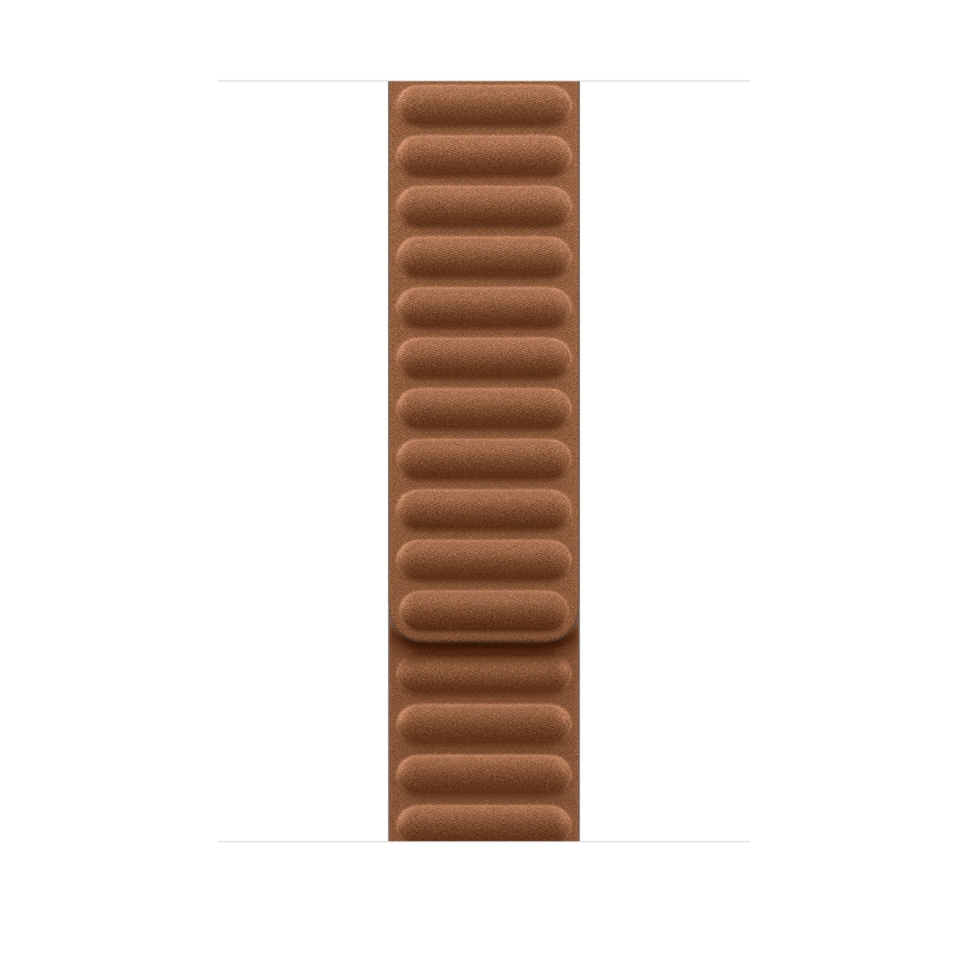 The Magnetic Link with FineWoven elegantly wraps around the wrist and magically attaches with moulded magnets that gently flex to help maintain security and comfort throughout the day. Made from a durable micro-twill, the FineWoven material has a soft, suede-like feel. It was also designed with the earth in mind — made from 68% post-consumer recycled content and significantly reducing carbon emissions compared to leather.