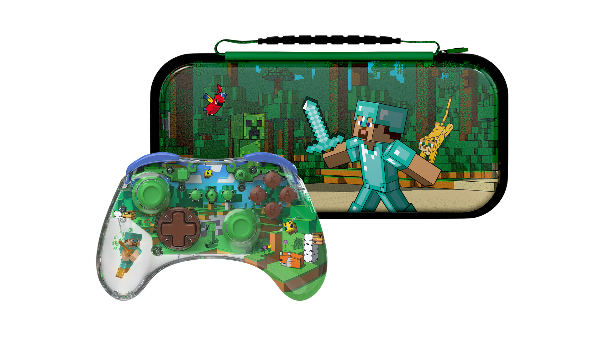 PDP REALMz™ Wireless Controller: Minecraft Forest Biome + Travel Case Plus Minecraft Forest Battle for Nintendo Switch™ Bundle